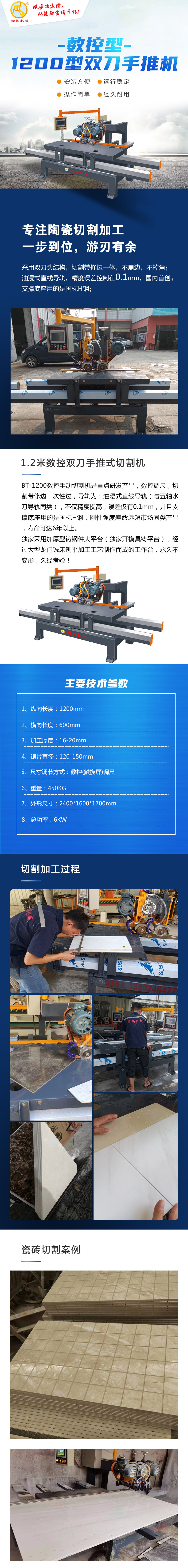 1.2米數(shù)控雙刀手推式切割機(jī),切割帶修邊一次性過,導(dǎo)軌為:油浸式直線導(dǎo)軌(與五軸水刀導(dǎo)軌同類),不僅精度提高,誤差僅有0.1mm,并且支撐底座用的是國標(biāo)H鋼,剛性強(qiáng)度壽命遠(yuǎn)超市場(chǎng)同類產(chǎn)品,壽命可達(dá)6年以上。